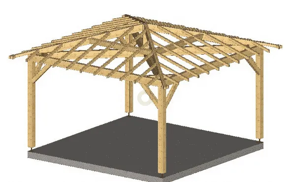 plan de la charpente du kiosque à 4 pans
